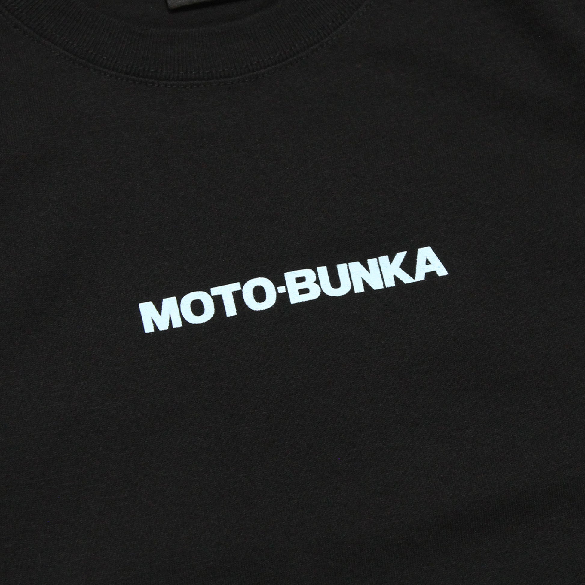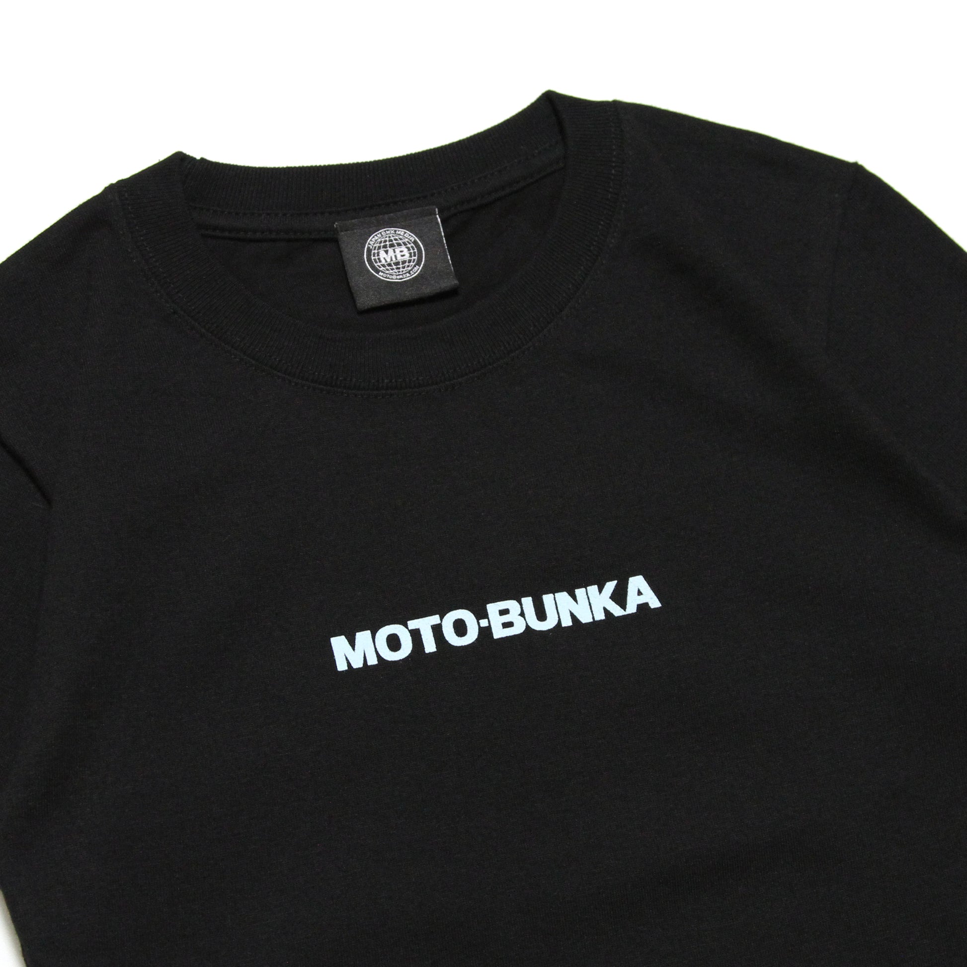This T-shirt features the MOTO-BUNKA text logo on the front and the MB icon logo on the back.