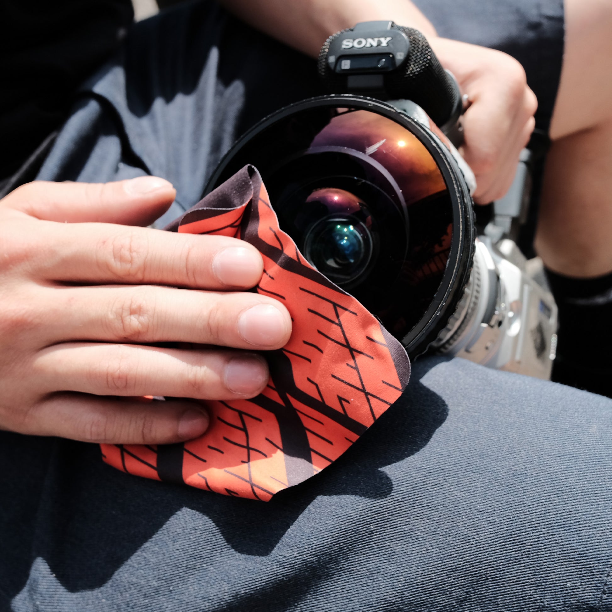 This lens cleaner set includes an air blower with a brush to remove dust from lenses and monitors, as well as two cleaning cloths (15 x 15 cm) in a zip pack for wiping away dirt.