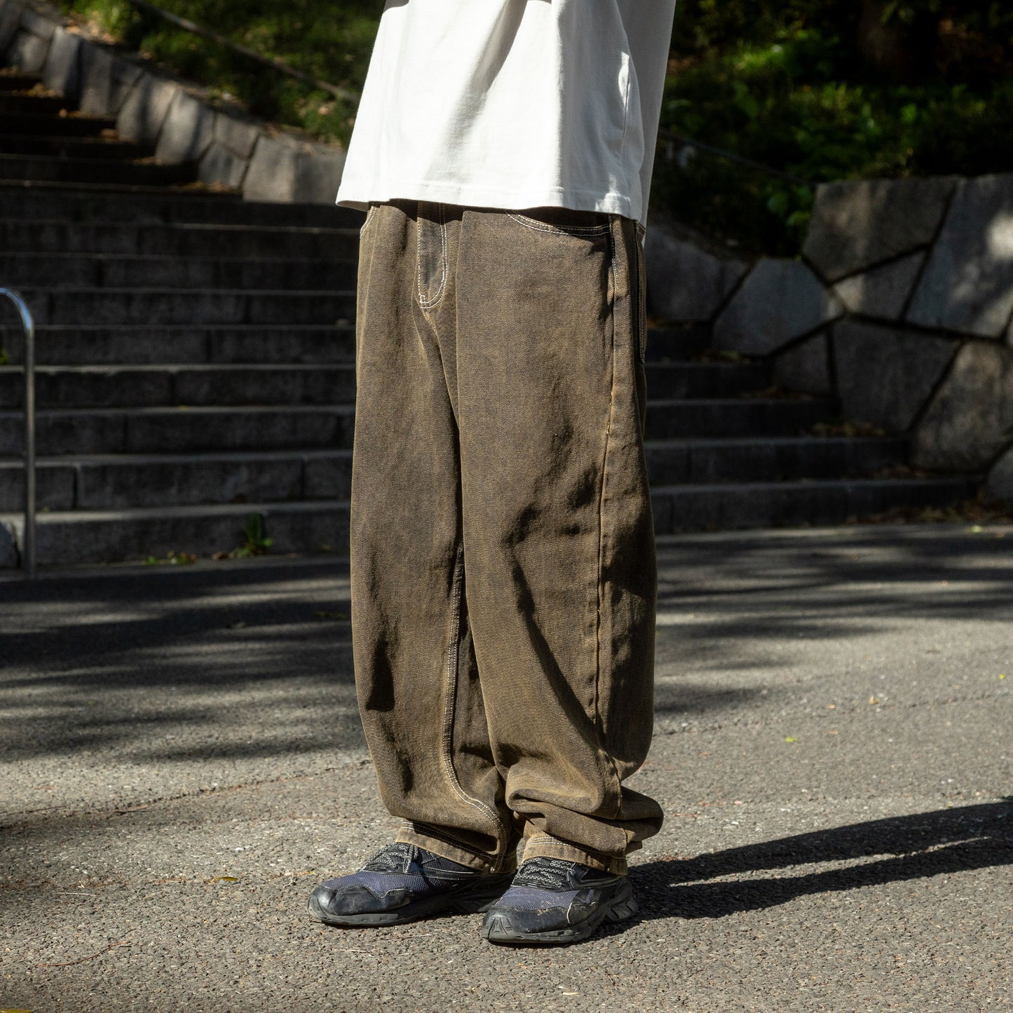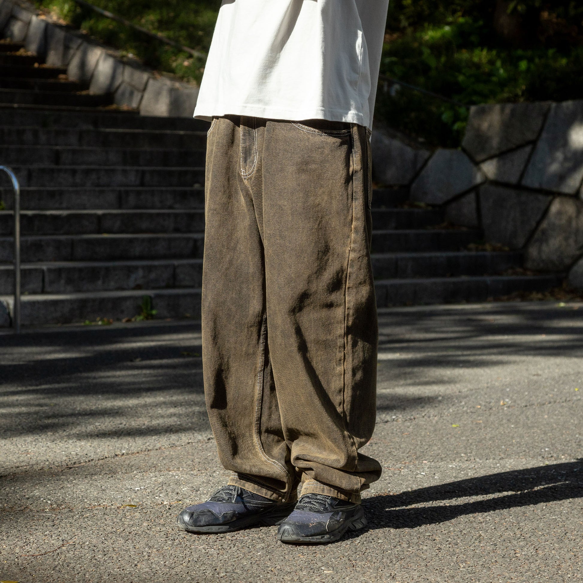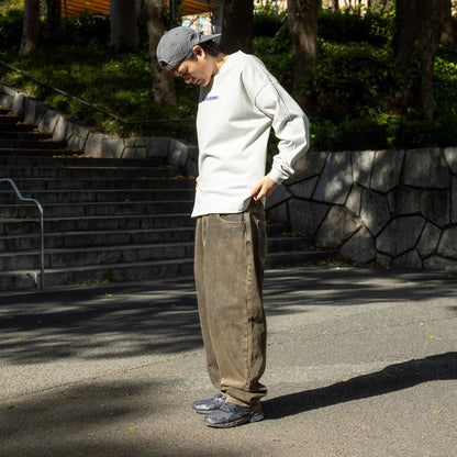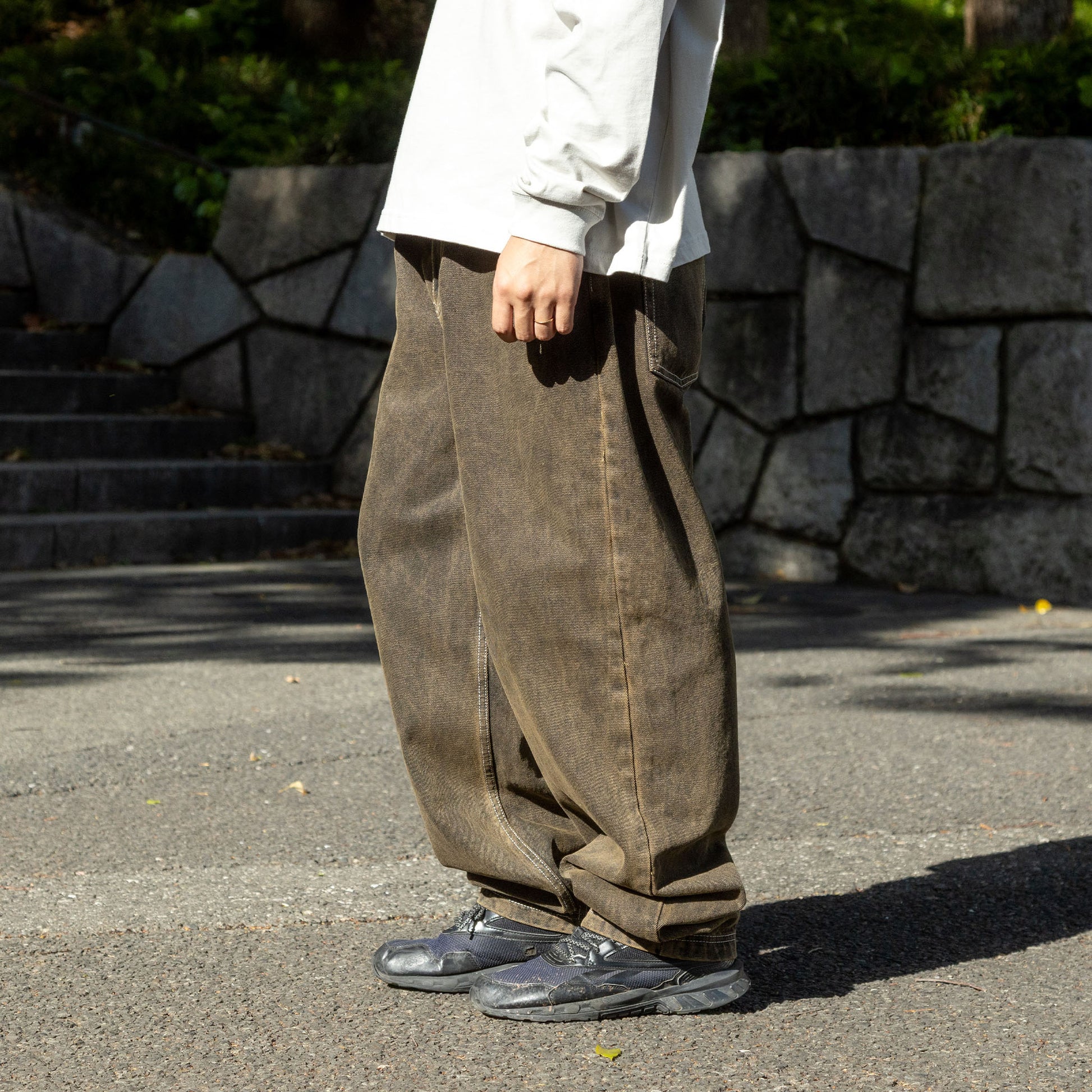 버기 타입의 데님입니다.가랑이와 밑단을 스티치로 강화하는 등 라이더 시선으로 만들어지고 있습니다.