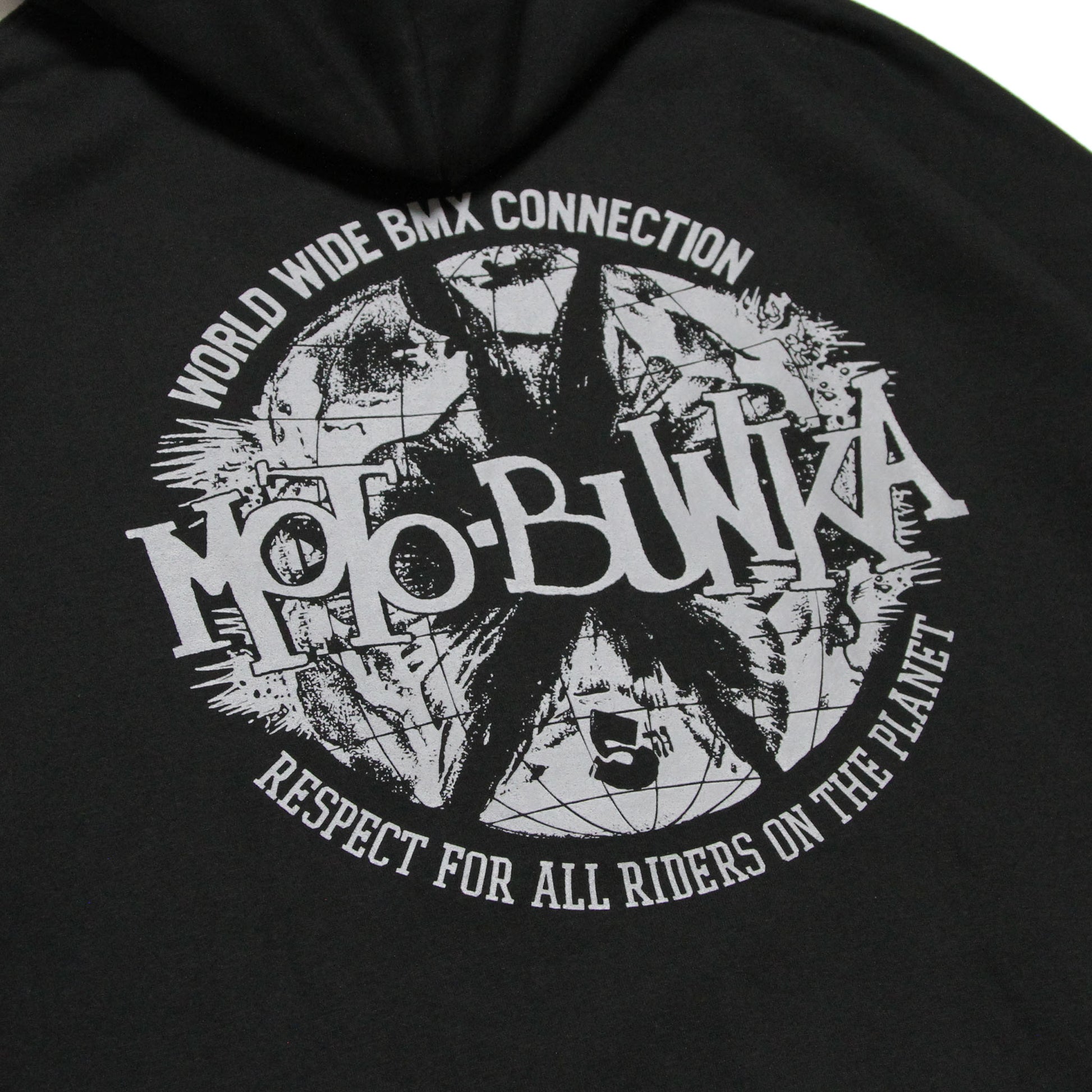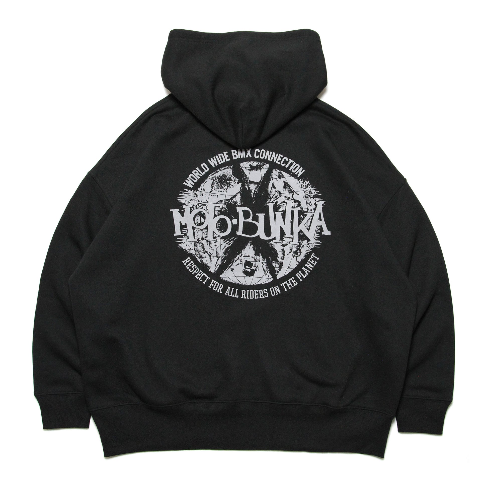 カルチャーマガジン「HIDDEN Champion」 のデザインも手がける“Publicdevice”が、MOTO-BUNKAの5周年を記念してデザインしたアートを落とし込んだフーディーです。