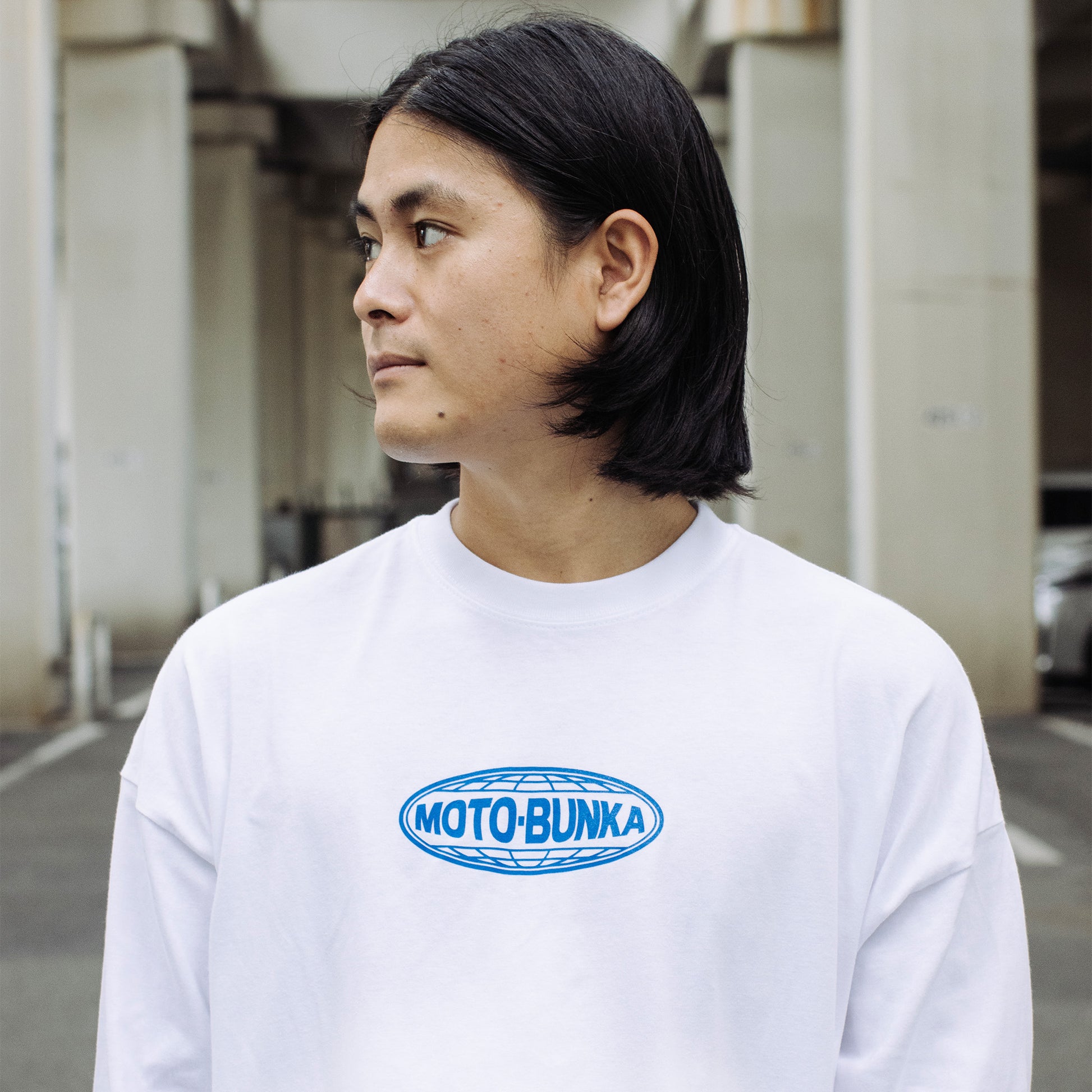 MOTO-BUNKA - Oval Logo Long Sleeve/White-Blue