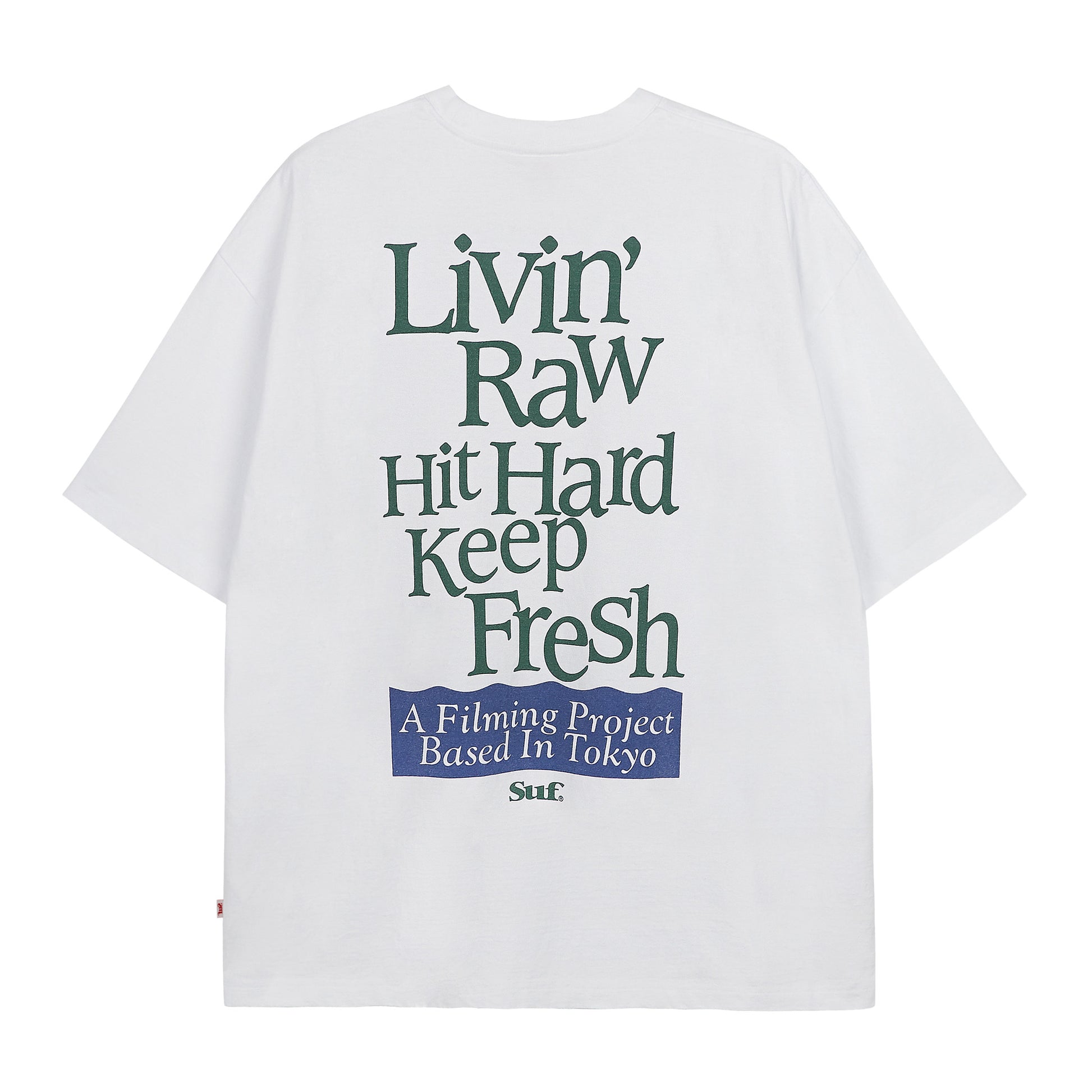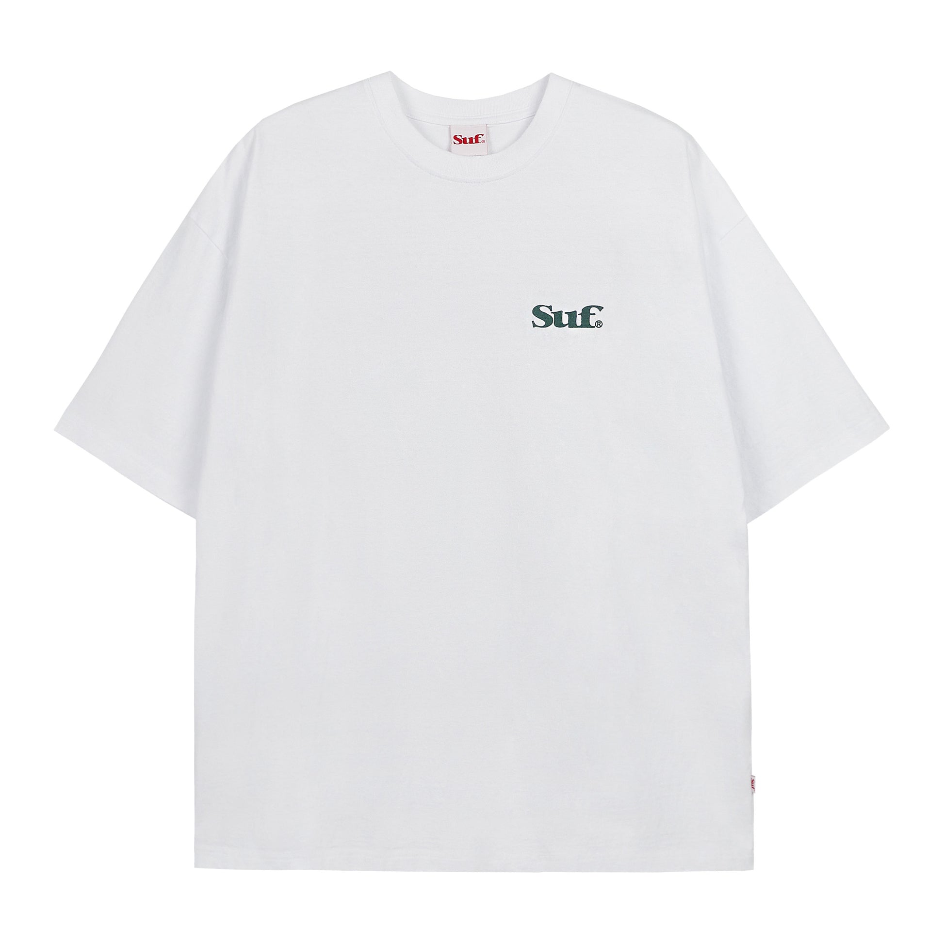 SUFのブランドスローガンを背中に大きくプリントしたTシャツ。