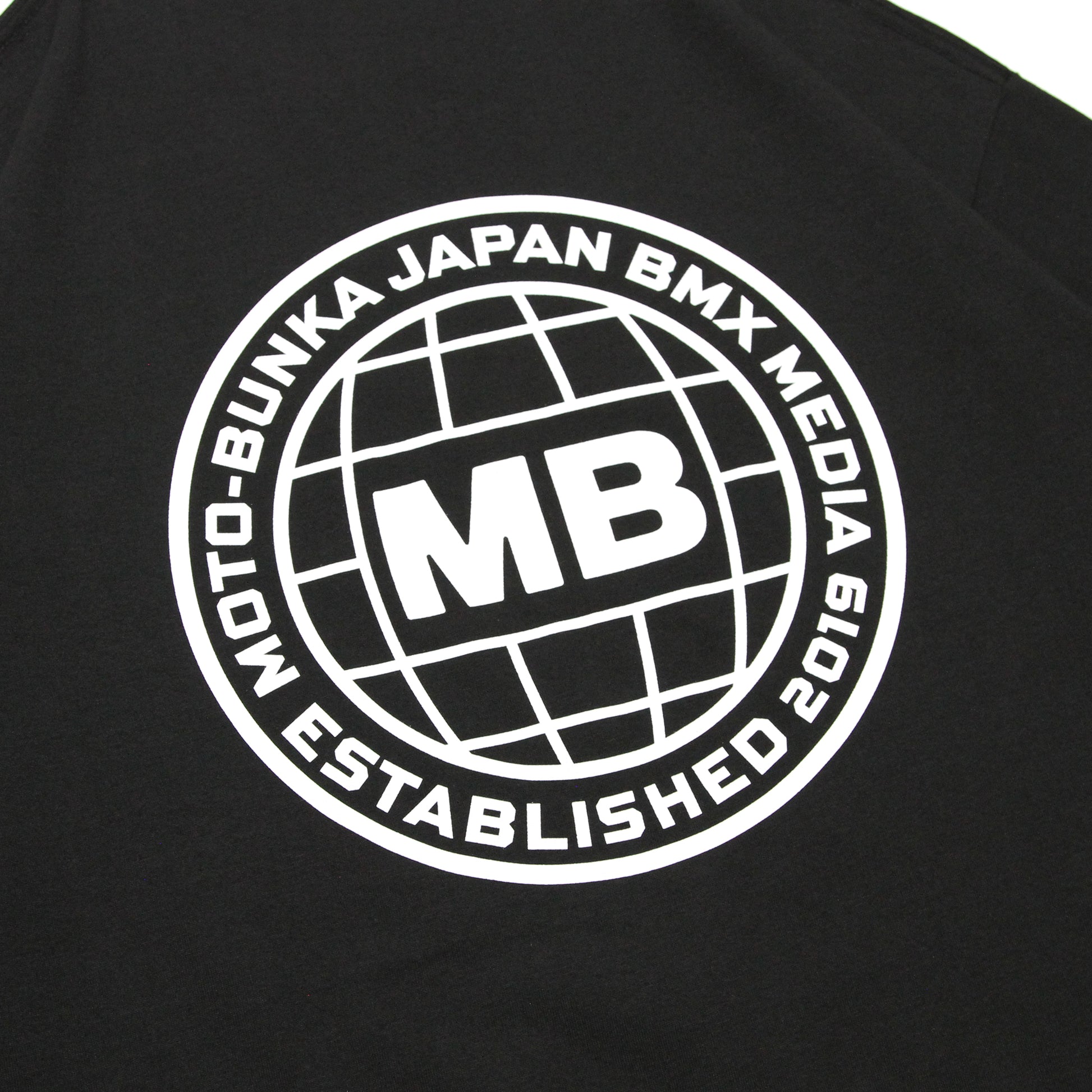這款 T 卹正面印有 MOTO-BUNKA 文字標識,背面印有 MB 圖示標識。